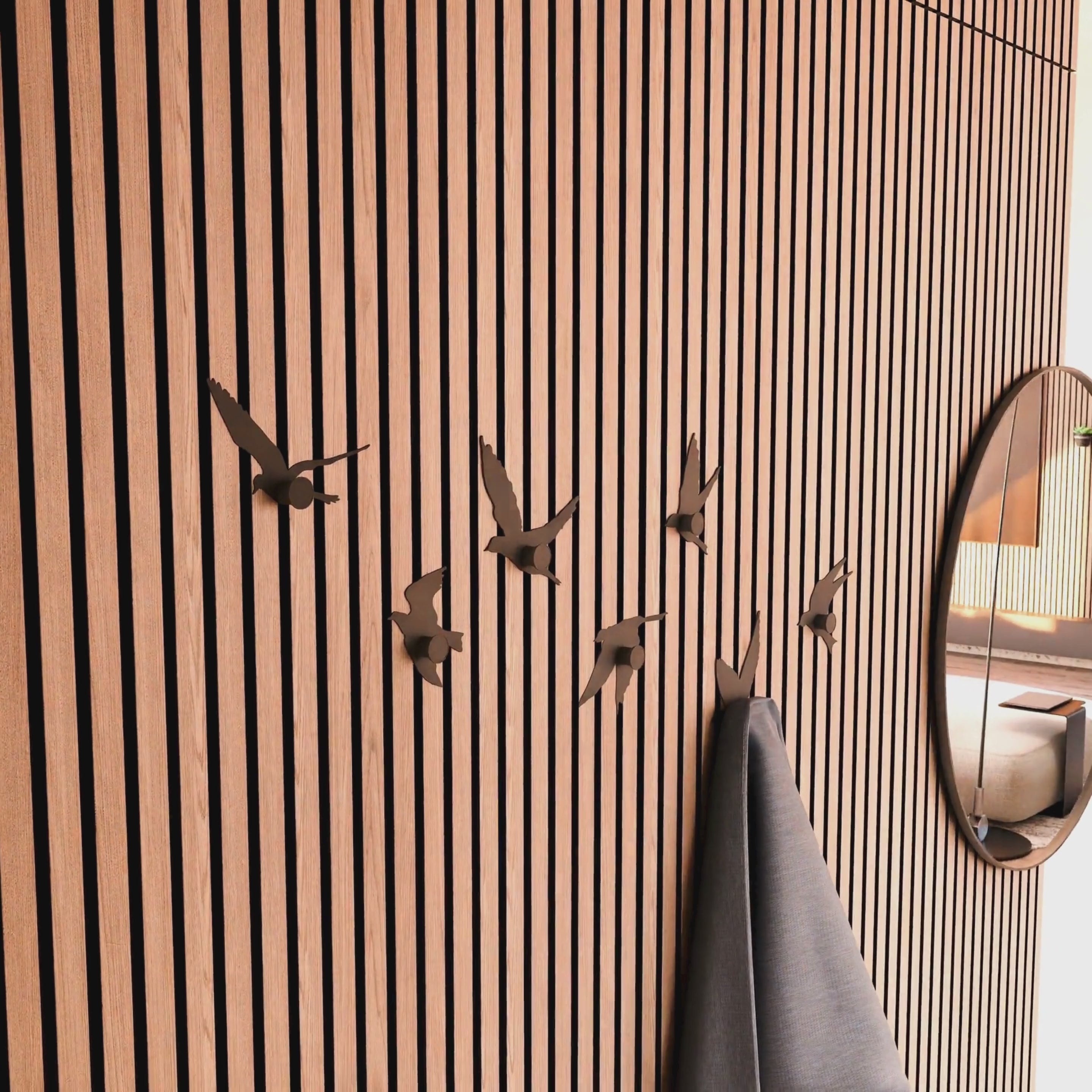 Round Hook/Hanger Oak Wood Veneer for Acoustic Panels - Installation Type: Wall Clip